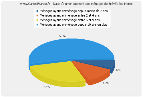 - Nombre de ménages de Bréville-les-Monts ayant emménagé depuis 10 ans ou plus : 140