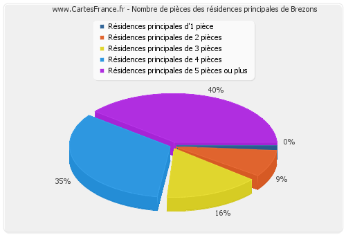 - Nombre de résidences principales de Brezons de cinq pièces et plus : 36