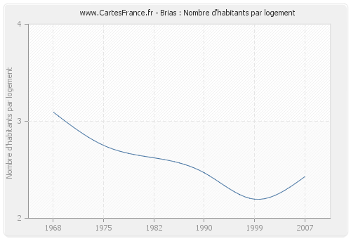 - Nombre d'habitants moyen par logement de Brias en 2007 : 2,43