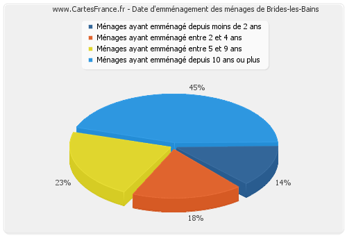 - Nombre de ménages de Brides-les-Bains ayant emménagé depuis moins de 2 ans : 39