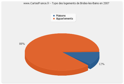 Les logements de Brides-les-Bains étaient composées en 2007 de 143 maisons et 1 080 appartements.