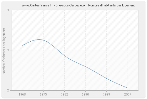 - Nombre d'habitants moyen par logement de Brie-sous-Barbezieux en 2007 : 2,06