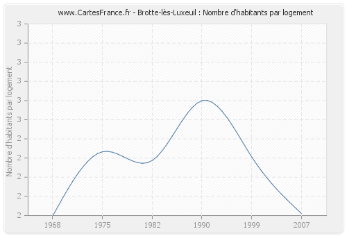 - Nombre d'habitants moyen par logement de Brotte-lès-Luxeuil en 1968 : 2,00