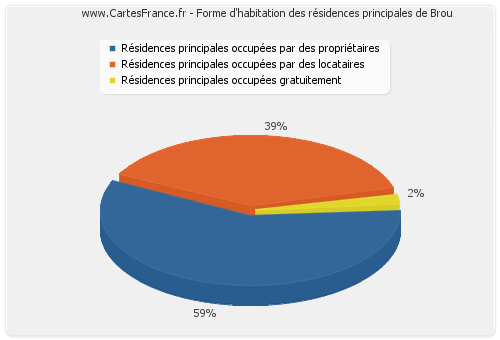 - Nombre de résidences principales de Brou occupées gratuitement : 39