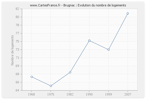 Historique du nombre de logements de Brugnac de 1968 à 2007 :
