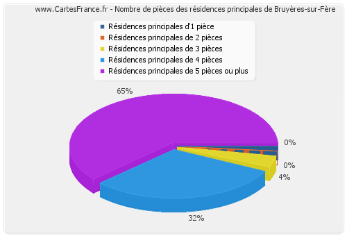 Nombre de pièces des résidences principales de Bruyères-sur-Fère en 2007 :