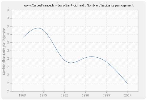 - Nombre d'habitants moyen par logement de Bucy-Saint-Liphard en 2007 : 2,09