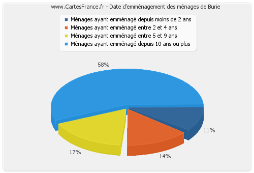 - Nombre de ménages de Burie ayant emménagé depuis moins de 2 ans : 58