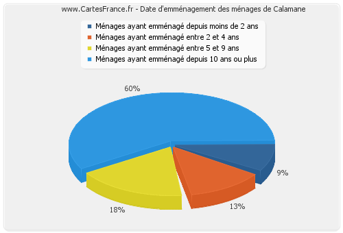 - Nombre de ménages de Calamane ayant emménagé depuis 10 ans ou plus : 99