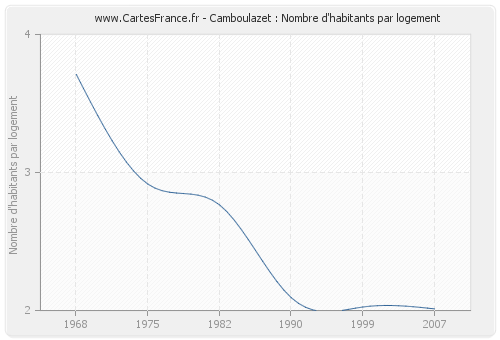 - Nombre d'habitants moyen par logement de Camboulazet en 2007 : 2,01