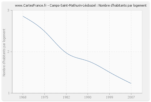 - Nombre d'habitants moyen par logement de Camps-Saint-Mathurin-Léobazel en 2007 : 1,23
