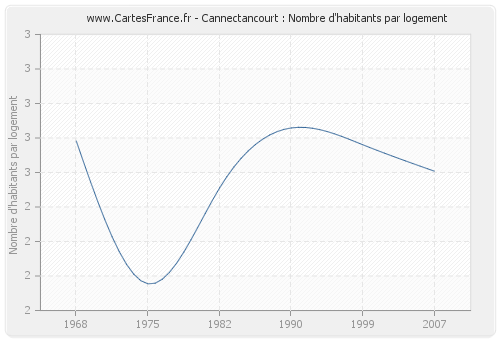 - Nombre d'habitants moyen par logement de Cannectancourt en 1968 : 2,65