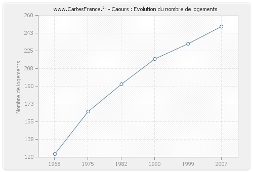 Historique du nombre de logements de Caours de 1968 à 2007 :