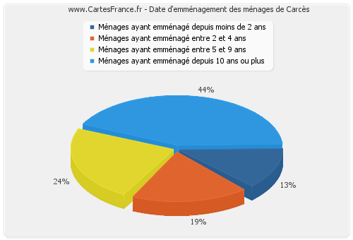 - Nombre de ménages de Carcès ayant emménagé depuis 10 ans ou plus : 593