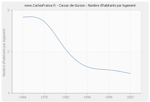 - Nombre d'habitants moyen par logement de Carsac-de-Gurson en 2007 : 1,47