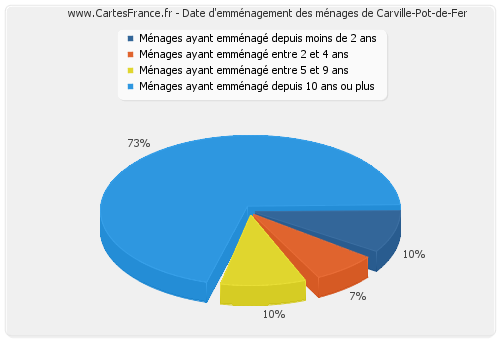 - Nombre de ménages de Carville-Pot-de-Fer ayant emménagé depuis 10 ans ou plus : 30