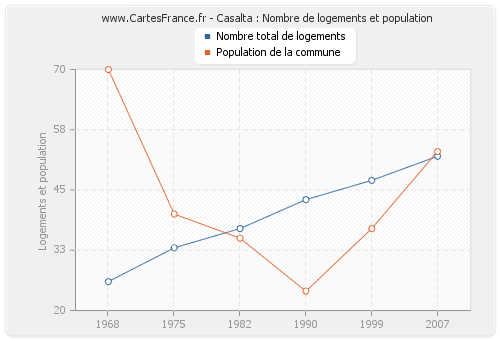 Historique du nombre de logements de Casalta de 1968 à 2007 :