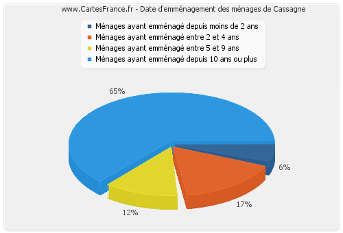 - Nombre de ménages de Cassagne ayant emménagé depuis 10 ans ou plus : 180