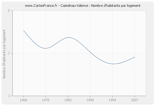 - Nombre d'habitants moyen par logement de Castelnau-Valence en 2007 : 1,91