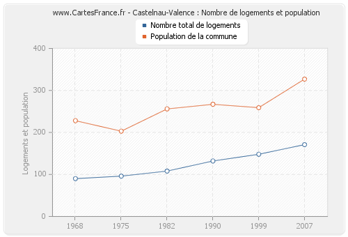 Historique du nombre de logements de Castelnau-Valence de 1968 à 2007 :