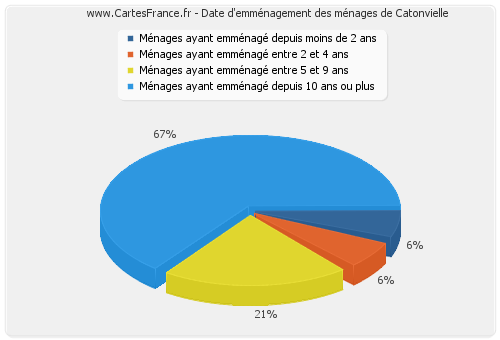 - Nombre de ménages de Catonvielle ayant emménagé depuis 10 ans ou plus : 22