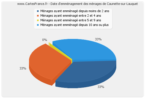 - Nombre de ménages de Caunette-sur-Lauquet ayant emménagé entre 5 et 9 ans : 0