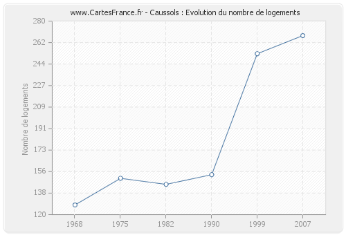 Historique du nombre de logements de Caussols de 1968 à 2007 :