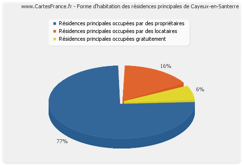 En 2007, 24 résidences principales de Cayeux-en-Santerre étaient occupées par des propriétaires.
