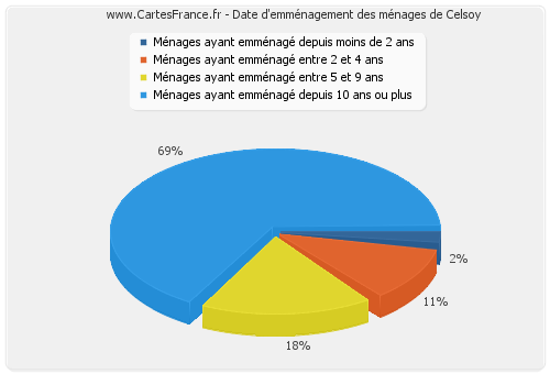 - Nombre de ménages de Celsoy ayant emménagé depuis 10 ans ou plus : 31