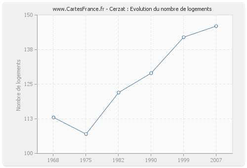 Le nombre de logements de Cerzat était de 146 en 2007, 142 en 1999, 129 en 1990, 122 en 1982, 107 en 1975 et 113 en 1968.