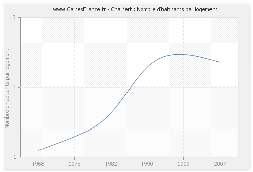 - Nombre d'habitants moyen par logement de Chalifert en 2007 : 2,36