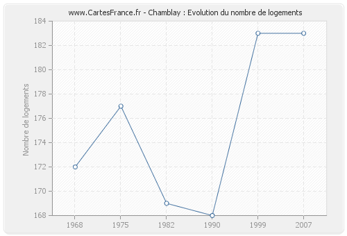 Le nombre de logements de Chamblay était de 183 en 2007, 183 en 1999, 168 en 1990, 169 en 1982, 177 en 1975 et 172 en 1968.