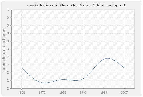 - Nombre d'habitants moyen par logement de Champdôtre en 1975 : 2,07