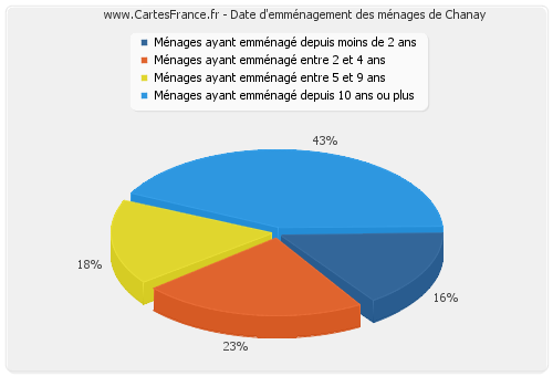 - Nombre de ménages de Chanay ayant emménagé depuis 10 ans ou plus : 94