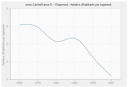 - Nombre d'habitants moyen par logement de Chaponost en 2007 : 2,62