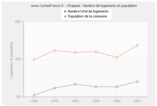 Historique du nombre de logements de Chappes de 1968 à 2007 :