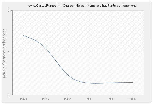 - Nombre d'habitants moyen par logement de Charbonnières en 2007 : 1,30