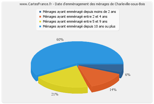 - Nombre de ménages de Charleville-sous-Bois ayant emménagé depuis moins de 2 ans : 5