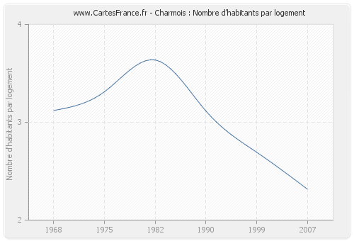 - Nombre d'habitants moyen par logement de Charmois en 1968 : 3,12