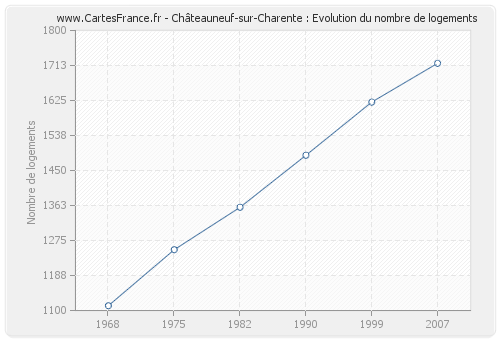 Logements de Châteauneuf-sur-Charente de 1968 à 2007 :