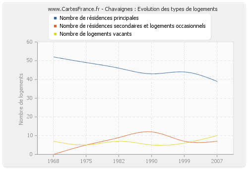 Historique du nombre de logements de Chavaignes de 1968 à 2007 :