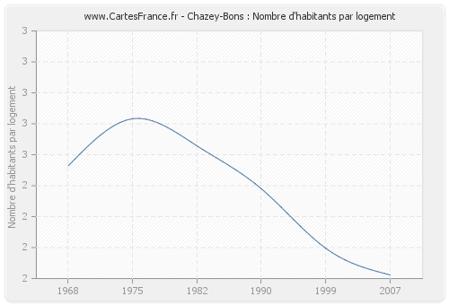 - Nombre d'habitants moyen par logement de Chazey-Bons en 2007 : 2,11