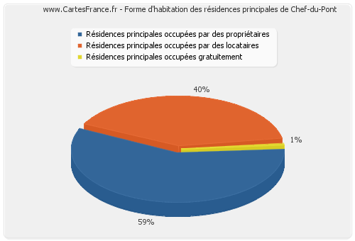 En 2007 les logements de Chef-du-Pont étaient composés de 326 résidences principales, 14 résidences secondaires ou occasionnels ainsi que 22 logements vacants.