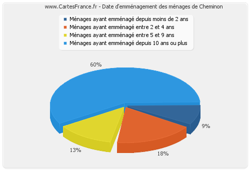 - Nombre de ménages de Cheminon ayant emménagé depuis 10 ans ou plus : 161