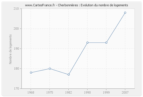 Historique du nombre de logements de Cherbonnières de 1968 à 2007 :