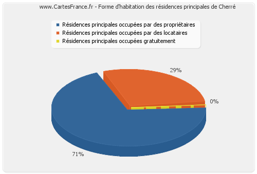 - Nombre de résidences principales de Cherré occupées gratuitement : 0
