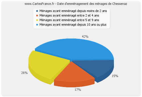 - Nombre de ménages de Chessenaz ayant emménagé depuis 10 ans ou plus : 28