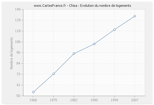 Historique du nombre de logements de Chisa de 1968 à 2007 :