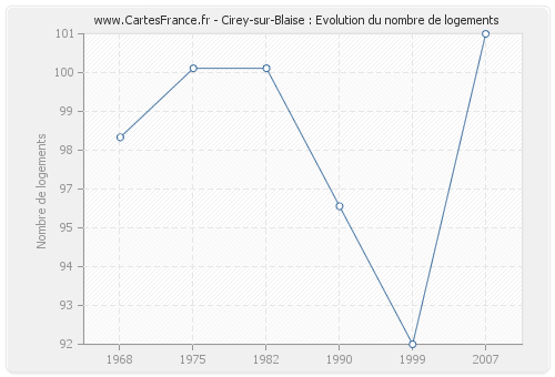 - Logements de Cirey-sur-Blaise en 1999 : 92