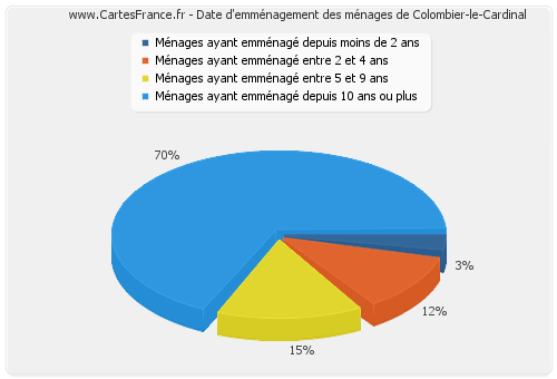 - Nombre de ménages de Colombier-le-Cardinal ayant emménagé depuis moins de 2 ans : 3